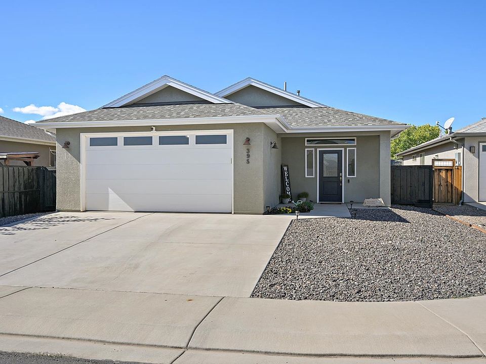 Modern and easy living at its finest! Welcome to 395 Trenton Ct #A, where you’ll find a home that fits the “move-in and love-it” lifestyle perfectly. Nestled in the Monarch Ridge subdivision, this home puts you just minutes from downtown Grand Junction, with Las Colonias Park, James Robb Park, and the Colorado River all close by - perfect for getting out and soaking in that Western Slope sunshine! From the curb, this home shines with its modern stucco exterior and low-maintenance xeriscaping - a clean, stylish look that means less yard work and more time enjoying your weekends. Step inside and you’ll be welcomed by an open, light-filled living space that instantly feels calm and contemporary. The LVP flooring, neutral color palette, and modern fixtures create a space that feels both fresh and inviting. The dining area sits perfectly between the kitchen and living space, making it easy to host a dinner party or a casual pizza night. And speaking of the kitchen - it’s a showstopper! You’ll love the sleek dark cabinetry, gorgeous counters and backsplash, stainless steel appliances, and a pantry that’s ready for all your snacks and essentials. The primary suite is spacious and serene, with large windows for natural light and a beautiful en-suite bathroom featuring dual vanities, a walk-in shower, and a touch of elegant tile detail. Two additional bedrooms provide flexible space for guests, kids, a home office, or whatever your life calls for, along with a modern full bath that ties it all together. The laundry room is both practical and efficient - complete with built-in cabinetry and hardwired coax and ethernet to keep things connected and organized. The two-car garage has plenty of room for storage and projects, with shelving already in place. Out back, unwind under the covered patio or enjoy evenings under the pergola - ideal for outdoor dining or cozy fire pit nights. The yard is fully xeriscaped and bordered by a modern, stylish fence for privacy and a clean finish. This home is the total package - stylish, functional, and in a fantastic location. Don’t let this one slip by! Come see it today!