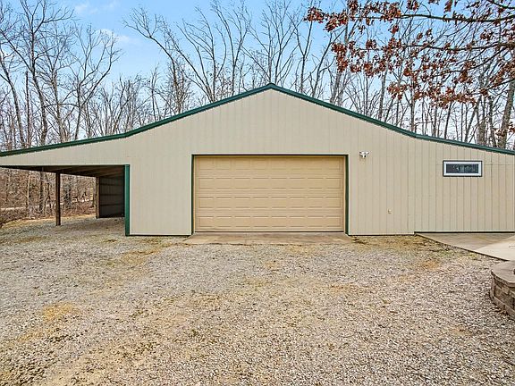 Tucked away in the woods this beautiful property features a lovely single level home and a nice outbuilding with an additional finished living space on nearly 3 acres! Well maintained and cared for by the current owners this property is MOVE IN READY. The three bedroom, two bath home features an oversized attached two car garage and many nice features. The additional 320 sq ft living area in the 54x32 outbuilding can easily function as in law quarters or guest area and features a full bathroom. The outbuilding includes concrete floors, a covered parking area, 220 electric service and RV hook up with a dump area. Head inside the main home to find nice finishes, a large living area with a fireplace, good sized dining area and a large kitchen. The kitchen features an island, granite counter tops, tile backsplash and all major kitchen appliances are included. The primary bedroom is spacious and features a lovely bathroom with a zero entry shower and double vanities. Two additional bedrooms in the main house and a nice sized laundry room. Enjoy the outdoors from multiple spots including the front porch and the lighted firepit area. The home is nicely situated on top of the hill. Make plans to see this property today!