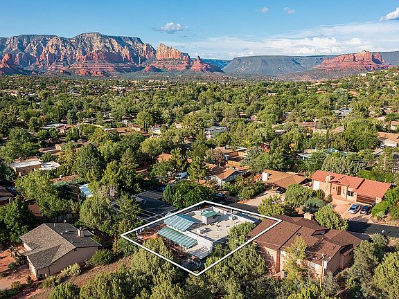 Views on View Drive! Located in the heart of West Sedona, this non-HOA home is ideal for full-time residents, as a thriving vacation rental, or both! With 2,595 SqFt., this 4 bedroom 4 bathroom single level home features an open great room with industrial accents and high ceilings showcasing windows of red rock views! Special highlights include: wrap-around deck, hot tub, mature peach and pear trees, roof-top deck with stunning red rock views, parking for cars and an RV, 2 HVAC systems, gas range, and a large in-law suite with separate parking that currently functions as a successful short-term rental unit. In-law suite comes fully furnished and ready to rent out day one! Open Houses will be 8/4, 8/5, 8/6 from 12:00PM-3:00PM. Parcel : 408-07-094A is included with this sale.