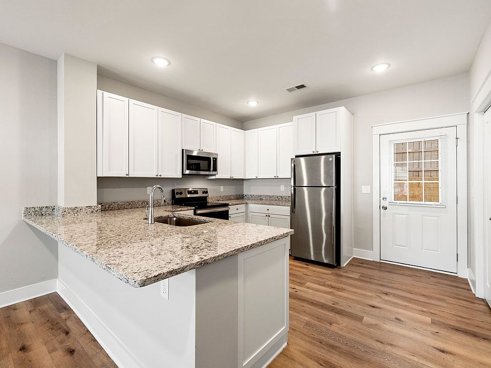 Full kitchenConvenient powder roomLaundry roomCozy carpeted bedroomsDurable vinyl flooring