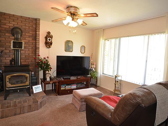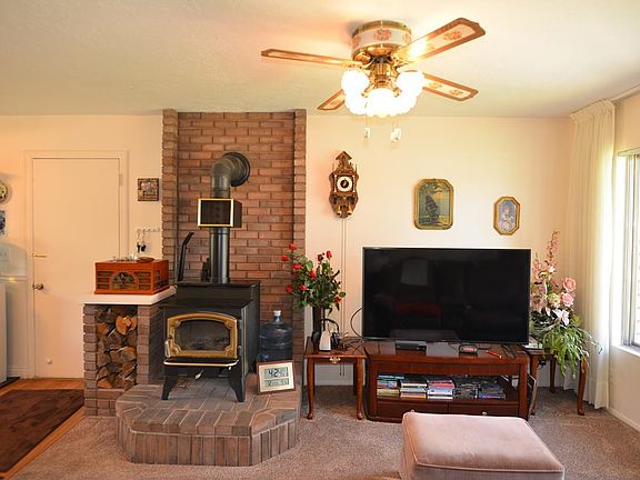 Gorgeous brick home in nice quiet neighborhood with incredible mountain views. Corner lot with plenty of room for RV parking, family reunions, peace and relaxation. Huge heated shop with 220 V for welder, built in work benches and shelving. Compressor complete w/ tank and motor and riding lawn mower w/ snow plow included. Fenced and landscaped throughout w/ beautiful, mature trees including apple, 2 cherry, peach, plum, and 2 apricot. Timeless brick home w/metal roof with 4 spacious bedrooms, wood stove with blower and a great floorplan. Newly remodeled kitchen with granite countertops and newer stainless appliances. Newer laminate and carpet through out. Covered back patio to take in the fresh air and enjoy the views.