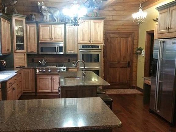 You Gotta See this Fantastic Ozark Mountain Top High Quality log home with a Great view of the Famous White River. 94 wooded acres with trails for walking, biking, cycling, horses. Large Metal 4 bay garage for all your toys or could be converted to a horse barn. Finish basement floor to your preference, top quality throughout. Paved drive thru the property. Very private settting. Master Bedroom on Main floor. Two bedroom suites on upper level. Large 3 car garage with half bath and an excellent.