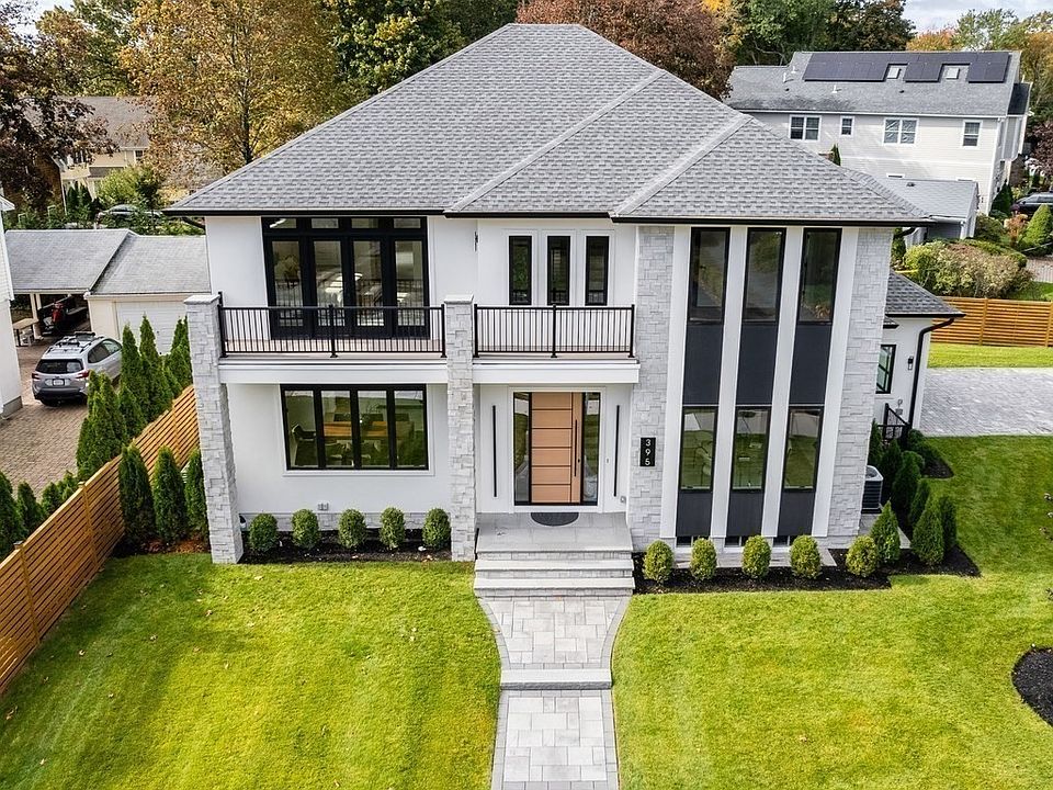 This recently completed, contemporary showpiece on Newton's Southside. Luxury construction by one of Newton’s most reputable/high-end developers. The modern, well designed floor-plan offers 5,673+- sq.ft of living space: consisting of 4 finished levels, 7+ bedrooms/7.5 bathrooms, strategically placed throughout. Main level floor-plan boasts 10ft ceilings, grand foyer leading into the living room w/fireplace. State-of-the-art kitchen equipped w/JennAir appliances, oversized waterfall island, walk-in pantry, & wet bar station, leads to a formal dining room. Main level bedroom/en suite bath OR home office! Mud room w/custom built-ins, off the 2 car heated garage. Primary bedroom w/private balcony, spa grade bathroom & double walk-in closets. Lower level offering a family room w/built-in wine storage/wet bar, media room, gym, & bedrooms. Low maintenance backyard w/patio & professional landscaping.