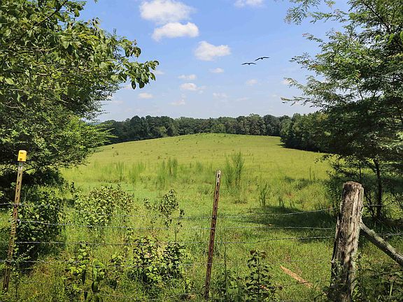This hunter's paradise is breathtaking with deer and turkey roaming this 88 acres of property we speak. Make this your private home or share with family and friends for a perfect quiet get away or make this your farm. Pasture and hay fields are available w/Fields for planting a crop or two. Possibilities are endless. Have you ever wanted cows? This is it! An acre pond is over the hill and not far away! This quiet place includes a 1295 sq ft home offering 3 bedrooms and 1 full bath. Per seller, hardwood flooring under all carpeted areas. The eat in kitchen opens up to a screen porch. Muscadines, Scuppernong Grapes, and apples trees are right in the back yard. Use one of the buildings for a perfect chicken coop or storage. Seller states there is a storm cellar on the property and well water available. New windows throughout. Property is being sold AS IS. Roof, HVAC, WH age unknown. Buyer to verify all information and sq ft. A new survey is on file.Call to view today NEW SURVEY avail.