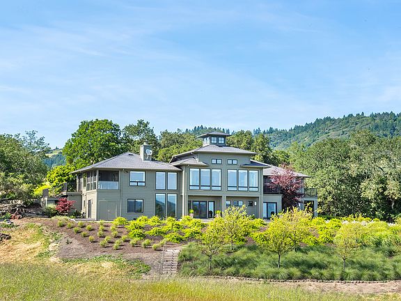 Set on more than 15 gated and private acres sits a custom contemporary home with the highest quality materials and craftsmanship including Brazilian cherry wood, travertine and marble flooring. Includes 2 master suites, a home office, formal glass walled living room, family room with fireplace, chef's kitchen, game room and library. Quality addition and remodel in 2005. Mature landscaping surround this home with vineyard and long range views.