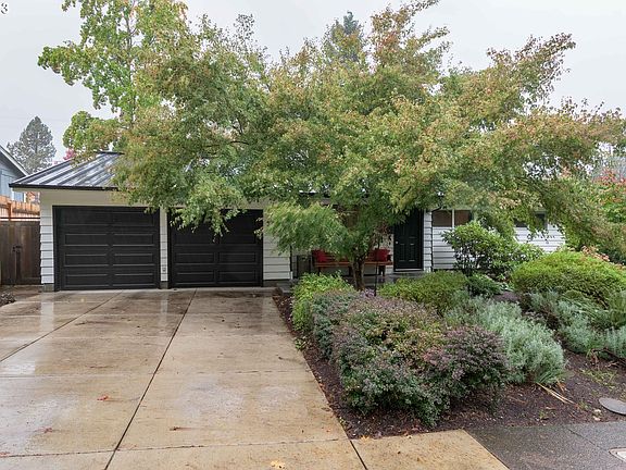 Nestled in the highly sought after South Hills area, this 3 bed/2 bath home delivers on both comfort and convenience. The days of summer will have you relaxing in the lush, fully-fenced backyard with well established blueberry bushes ripe for picking and brightly colored flowers in abundance. At the end of the day, you can choose to relax in the hot tub under the stars or cozy up in front of the fireplace. The robust integrity of this home has recently been reinforced with a new metal roof installed in 2022 which provides the home with both energy efficiency and long term viability, and foundation work by RamJack West which includes the installation of six helical piers (transferable warranty option). Some of Eugene's top rated schools, Edgewood Shopping Center, and Tugman Park are all within casual walking distance. The home has a long list of up-to-date amenities which include: central heat/air paired with a nest thermostat and a highly rated Merv 16 Air filtration system, original hardwood maple floors throughout, automatic irrigation system, high efficiency heat pump, 200 amp service generator connection, Ring doorbell, new solid core interior doors, induction cook top, built in microwave with vent, and black out power blinds for primary bedroom, plus more. The ample two car garage space includes a Tesla charger and a smart garage door opener. LG tower washer/dryer is included in the sale. Owner made all the right updates to ensure this home provides lasting fulfillment. Make it yours!