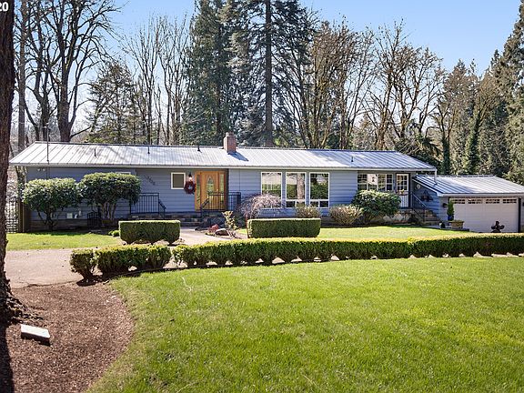 Lovely remodeled mid-century home on .97 acre in desirable West Linn neighborhood. Bright & airy with vaulted ceilings in living room & master suite. Updated eat-in kitchen with cherry cabinets, granite, high-end stainless appliances & cork floor. Living room has fireplace and cherry buffet & bookcases. Large, private entertaining deck backs to property's wooded ravine. Daylight basement has bonus room with fireplace, private guest room with private bath & huge woodshop. Blocks from the river.
