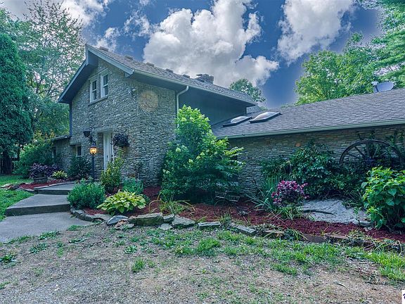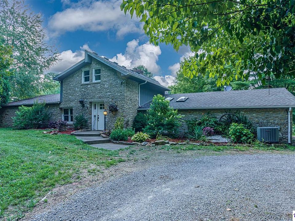 You don't want to miss your chance to tour this unique, german style home! This home offers 4 bedrooms (with possible 5th), 2.5 bathrooms, stone walls on the exterior as well as the interior, hardwood flooring, huge walk in the pantry, stone & brick arched doorways, newly renovated bathrooms, updated light fixtures, and so much more! This home is situated on over 5 acres that features a barn with 3 horse stalls, fenced for horses, huge detached carport, above ground pool, & beautiful landscaping. Call today to schedule your tour before this one is gone!