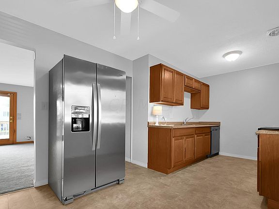 Lovely Raised Ranch in the desirable Southern Pines neighborhood. Covered front Porch. Direct access from Living Rm. to fenced backyard w/ elevated rear deck perfect for grilling or casual gatherings. So many recent improvements including Brand new dimensional shingle roof Sept. 22. Brand new paint throughout main level Sept. 22. Brand new carpet & new flooring in Kitchen & Full Bath Sept. 22. Stainless steel Appliances, Large picture window in Eat in Kitchen boasts plenty of natural light, walk-in pantry, new ceiling fans in Kitchen & Living Rm. Replacement windows, new landscaping, low traffic street, new sump pump & garage door opener, Large Recreation Rm. w/ Home Office planning desk & shelving, washer & dryer remain. Extra deep 26' garage. Great value under $125.00 per sq. ft. Nice!