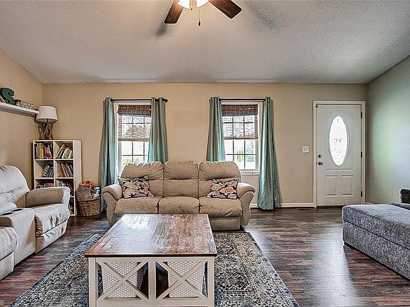 If you like country living but in a nice subdivision then this one is a must see! This home offers 3 BR, 2 full BA on a 1+ acre lot in a cul-de-sac. Huge living room with vaulted ceiling and a fireplace w/gas logs. It has a big primary BR with a walk-in closet. Primary BA has a tub/shower combo and a double vanity. The kitchen has a new microwave and dishwasher. All appliances to remain, including the refrigerator. There is also an island/eat-at bar and a dining area. New storm doors on front & back doors. There is a spacious back yard that features a concrete patio for relaxing or grilling out while you watch the kids play. There is a nice outbuilding for lawn mowers, tools or storage. There is a double garage and lots of parking space in the driveway. Roof replaced in 2022 and Heat pump in 2019. USDA eligible.