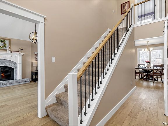 This beautiful home has been completely renovated and meticulously maintained by the current owners. Located in Alden, this property sits on 10 acres and is sure to please! Engineered hardwood floors flow throughout the first floor and are complimented by handmade doors, trim and baseboards. Cathedral ceilings in the large living room features a wood burning fireplace with beautiful mantle. The large eat-in kitchen includes s/s appliances, granite counters, soft close cabinets and a breakfast bar. The formal dining room overlooks the expansive 10 acre lot. A custom laundry/mudroom with ample storage, walk-in pantry and a half bath can also be found on the first floor. Possible 4th bedroom/office on first floor. Follow the custom made banister upstairs to find 3 bedrooms and 2 full baths, including a primary suite w/ custom walk-in closet. Walk down to the luxurious fully finished basement and prepare to be amazed. Equipped with a wet bar, quartz counters and built in fridge. Basement also includes a gym & private office. Enjoy quiet nights on the back deck or in the hot tub overlooking the scenic yard. Open House- Sat 3/25 from 11am-1pm. Offers will be reviewed Monday 3/27 at 3pm.