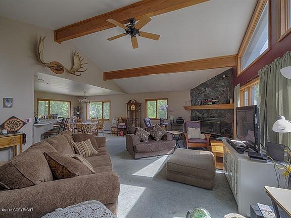 Unrestricted! Seller is Selling ''AS IS'' 9.43 acres of privacy just minutes from Palmer. Mountain views yet sheltered from the wind. Built in '94, this 3 bedroom, 2.5 bath with 2 car garage is situated in 2,728 sq. ft. of living space. (see more)Large entryway with access to oversized laundry room, Large kitchen for those that love to entertain, oak cabinetry, solid surface counter tops, breakfast bar, open to large living space, vaulted ceilings, open beams, stone fireplace with wood hearth, oversized master suite with walk in closet, large family room on lower level with 2 additional bedrooms, guest bath. Wood windows, gas baseboard heat, Seller needs to relocate quickly and property is in need of interior paint, new floor coverings and some rot is noted on the deck and stairs. Bring us your offer!!!