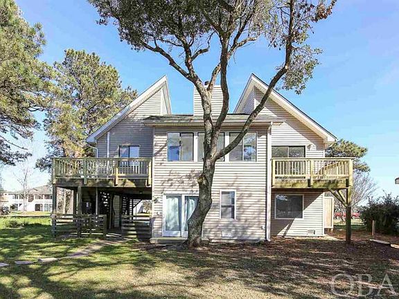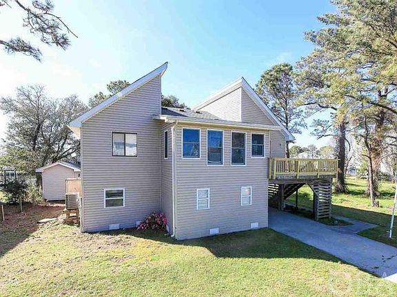 Enjoy breathtaking views of the canal and sunsets from this canalfront property on the Albemarle Sound. Dock your boat in your back yard! NEW decking, new carpet and new paint throughout the main living area. Main level features three carpeted bedrooms, two full bathrooms with new vanities, great room with a wood burning fireplace, ceramic tile floors, laundry room with a large closet, kitchen with newly painted wood cabinets, laminate counter tops, stainless steel sink, Island, and ceramic tile floors. Large ground floor enclosure with ceramic tile floors. Outdoor shower and storage shed. Perfect for entertainment, workshop and storage. Enjoy the extra amenities that this waterfront community of Kitty Hawk Landing has to offer including Boat Ramp, Private Beach Access with parking and bathrooms.