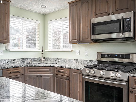 - Features: Builtin Range, Dishwasher, Gas Appliances, Island, Microwave, Pantry, Free Standing Refrigerator, Granite