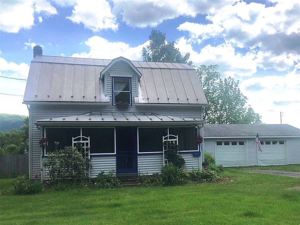 Great home offering modern kitchen, hardwood floors, new carpeting, fresh paint inside and out, tiled bathroom floor, screened porch, refinished deck, 3 season room, and 2.5 car garage. Enjoy fabulous pastoral views, excellent soil for gardening and mature apple and cherry trees! *Property is not located in a flood zone.*