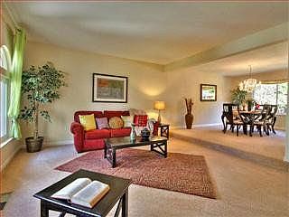 1 master bedroom suite, 2 or more showers over tubs, 2 or more stall showers, 2 or more tubs, cable tv available, ceilings insulated, double pane windows, extra storage, gas hookup in kitchen, gas water heater, ground floor bedroom, laundry area inside, separate dining room, tub in master bedroom, wall to wall carpeting, walls insulated, Automatic sprinkler(s), canyon view, city/public water, deck, fenced yard, level lot, lot sloped up from street, patio, sewer in & connected, sprinklers - front, sprinklers - rear