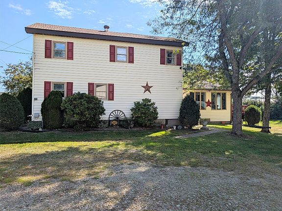 MOTIVATED SELLER! Spacious farmhouse featuring 4 bedrooms and 2 full bathrooms in Centerville Borough with approx. 1.5 acres and a 3,000 sq ft garage built in 2021—complete with 200-amp service and lift. Perfect for storage, hobbies, or serious projects. The home offers a large kitchen with island, a bright sunroom overlooking the backyard, and a welcoming entryway with a cozy propane fireplace insert. Upstairs, find additional bedrooms including the master, which connects to the second full bath. Watch deer from the back deck or covered patio. With extra outbuildings and wide-open space, this home is packed with potential! Seller willing to negotiate new finishes - turn this property into your new dream home!