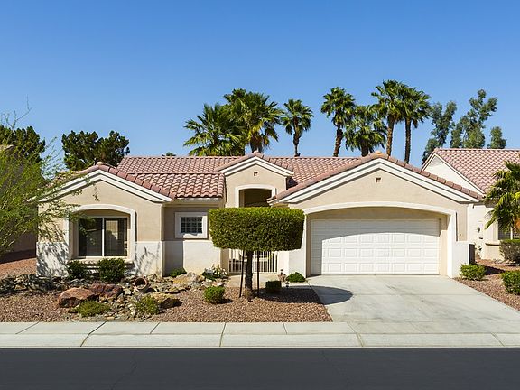Experience life at Sun City Palm Desert in this upgraded Morocco Plan (2 bed plus den, 2 bath main house plus detached 1 bed, 1 bath guest house) that has fantastic golf course and mountain views! You will love the upgrades in this light and bright open floor plan! The kitchen, which has a separate island plus a large eating area and access to both the laundry room and attached two car garage, opens to the living room providing views of the golf course and surrounding mountains! The living room has custom cabinetry, golf course and mountain views, and access to the large patio area that provides a nice blend of sun and shade for outside entertaining. The adjacent office built-ins and views, too! Master Suite also has views plus a walk-in closet with custom shelving and a private bath with dual sinks, a walk-in shower and a custom walk-in tub with jets. Bedroom Two is near a full bath. Detached Guest House has views, separate HVAC unit, and wet bar with sink and refrigerator.