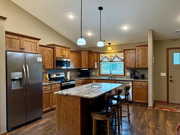 This 2-bedroom, 2-bath patio home showcases quality craftsmanship and thoughtful design throughout. The open-concept vaulted kitchen/living/dining area features oak mission-style cabinets and doors, granite countertops, pantry, and center island. Enjoy the bright vaulted sunroom, mudroom with walk-in closet that doubles as a safe room, and master suite complete with step-in shower, double-sink vanity, and spacious walk-in closet. Additional highlights include handicap-friendly 3' doorways, in-floor and forced-air heat, covered front entry, 12x12 rear patio and a fully finished and heated 3-stall garage. Abundant storage and quality finishes make this home a must-see!