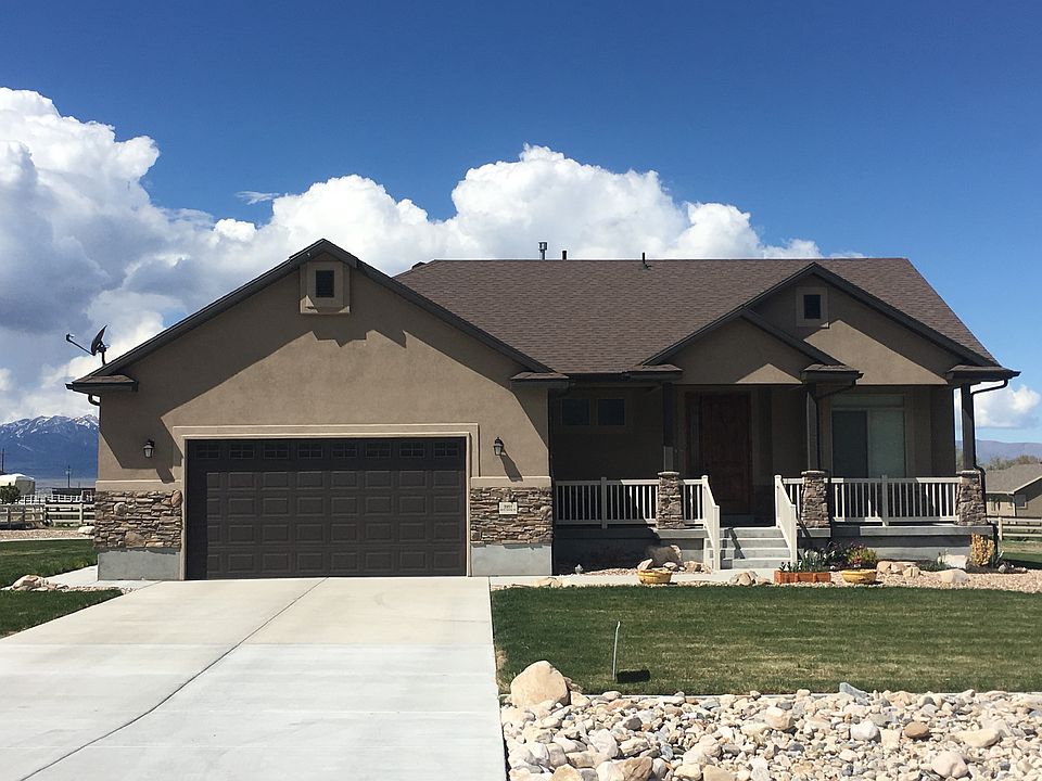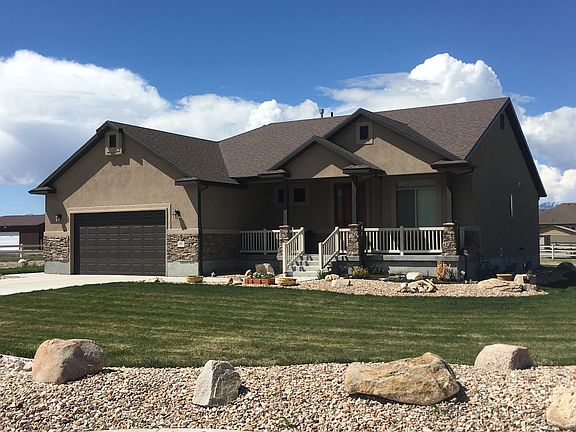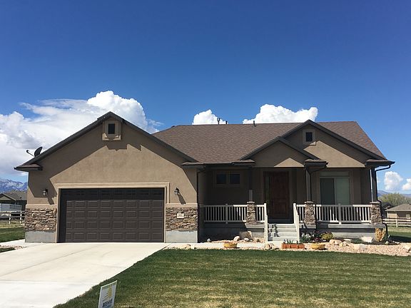 Don't wait on a builder, move into this beautiful Erda rambler on over 1 acre horse property by mid May! Surrounded by stunning panoramic mountain views, this home has a fully landscaped yard with drip irrigation and 21 station sprinkler system, RV parking, fenced, Trex decking back patio, cute front porch, upgraded garage with several 100 amp plugs, workbenches and full wall cabinets, multiple LED shop lights, area for garden. The inside offers granite counters, knotty alder cabinets, tiled showers, new ugraded stainless steel appliances, double gas oven and stove, Kinetico reverse osmosis water system, a gorgeous entry, vaulted ceilings, new hot water heater, full unfinished basement, sun darkening blinds in master, tons of storage, located in a beautiful and friendly neighborhood. These pictures don't do this home any justice! Square footage figures are provided as a courtesy estimate only. Buyer is advised to obtain an independent measurement.