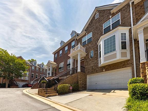 This pristine three level townhome, just minutes from Old Vinings Village, offers an abundance of living space with a light filled open floor plan (9 ft ceilings on main). Immaculate oak hardwoods are featured throughout the main level of the home. The main living space has a formal dining room spacious enough to seat eight up to ten guests for dinner. The kitchen space sits between the main living area and dining space. The kitchen has cherry solid wood cabinetry, Corian counters and premium black appliances (gas range and stove). There is a small built in desk space just off the kitchen. Craftsman accents (Crown molding, elliptical archways, designer lighting treatments) are featured throughout the residence. A double- sided fireplace is the centerpiece of the main living room. Double French doors lead out to the spacious elevated deck space off the living room. There is also a powder room just off the kitchen. The spacious Master Suite is situated on the back side of the upper level of the home. An enormous bathroom space and large walk in closet are adjacent to the bedroom space. There is a generous sized second bedroom and another full bathroom at the front side of the upper level. A laundry space is located off the hallway between the two upper bedrooms. The terrace level at the back side of the residence can be utilized as a third bedroom (there is a separate adjoining full bath), office space, media room or easily converted to an in- law suite. It has its own dedicated entrance from the back side of the home. The large two car garage has a large dedicated separate storage room. 2020-06-09