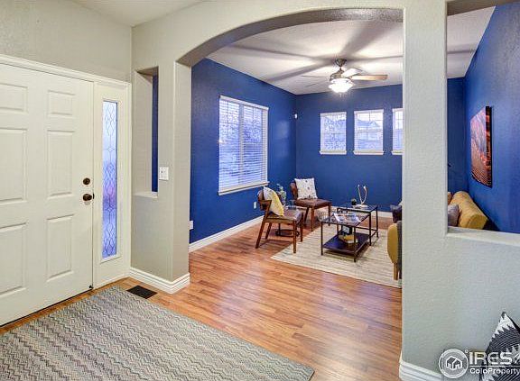 4 bed 2 story in W Loveland backing to open space. Back deck on east side to enjoy the view & afternoon shade. Small yard, perfect to garden & there's plenty of grass just on the other side of the fence! Close to Mehaffey park, trails nearby. Master has large walk-in closet & bath is complete w/ soaker tub. Gigantic kitch island w/ seating. Separate heat/ac units for upper/main flrs. Fresh ext paint & new carpet w/ plush, upgraded pad. Newer tile, laminate floors, trim on main & door hardware.