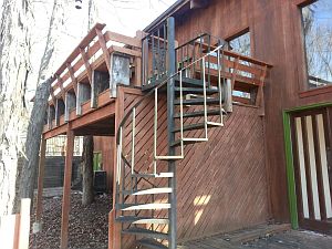 - Exterior features: Stone, Wood