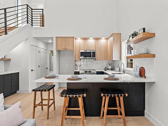 Situated in the heart of Woodstock’s most coveted neighborhood, this exceptional new construction home offers a truly rare and versatile floor plan—designed to fit your lifestyle.The main level features a spacious bedroom, full bath, and convenient laundry area, ideal for guests, a home office, or single-level living—an incredibly rare find in this market. The open-concept layout is both stylish and functional, featuring quartz countertops, stainless steel appliances, engineered hardwood floors, and a warm, inviting fireplace that anchors the living space. Upstairs, retreat to your own private primary suite, complete with vaulted ceilings, engineered hardwoods, luxurious en-suite bath, and an expansive walk-in closet—a perfect blend of comfort and sophistication. Step outside to enjoy two private outdoor spaces: a back deck perfect for relaxing or entertaining, and a large, secluded front patio that extends your living space into the outdoors. Plus 1 car off street parking. Unbeatable location + unique floor plan = a must-see! [Home Energy Score = 9. HES Report at https://rpt.greenbuildingregistry.com/hes/OR10238580]