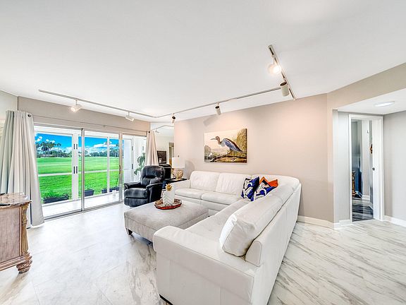 New A/C installed Sept. 2023 with warranty transferred to new owner. 2/2 on 1st Floor. TURNKEY or UNFURNISHED fully upgraded home. White kitchen cabinetry pull out shelves with lazy Susan and silestone counter top. Inner Glass front door with screen pull down. Westerly exposure with beauty of sunset on the golf course from 27 foot enclosed glass and screened Lanai (Rolladen shutters), with flat screen TV to enjoy your day. Internet and water included. Remote controls for all fans and lights. New Beautyrest hybrid mattresses queen and king if sold furnished. New electrical panel. Parking space near home. Gym, pool, entertainment and wonderful Mel's restaurant at Clubhouse. Minutes to Turnpike and shopping.