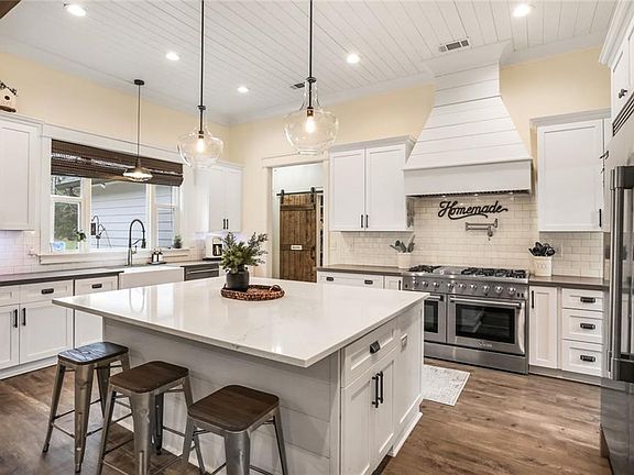This modern farmhouse style is a show stopper! Features 3bed/2baths and an office. Quartz island and countertops throughout. Thor 6-burner gas range, pot filler, built-in Frigidaire Professional ref/freezer. Primary bath boasts custom walk in shower, free standing tub, separate vanities and amazing WIC. Shiplap ceilings, luxury vinyl plank flooring, split open floor plan. Gated entry with fenced property on over 3 acres. The patio is great for entertaining, must see!