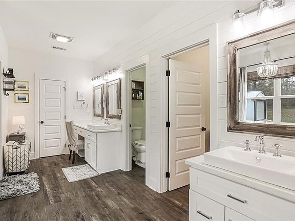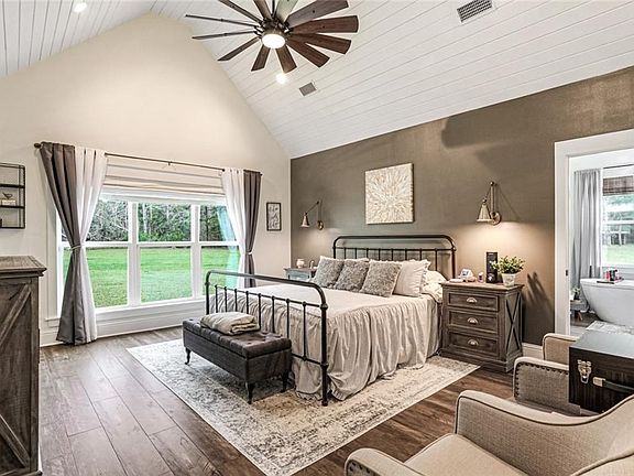 This modern farmhouse style is a show stopper! Features 3bed/2baths and an office. Quartz island and countertops throughout. Thor 6-burner gas range, pot filler, built-in Frigidaire Professional ref/freezer. Primary bath boasts custom walk in shower, free standing tub, separate vanities and amazing WIC. Shiplap ceilings, luxury vinyl plank flooring, split open floor plan. Gated entry with fenced property on over 3 acres. The patio is great for entertaining, must see!