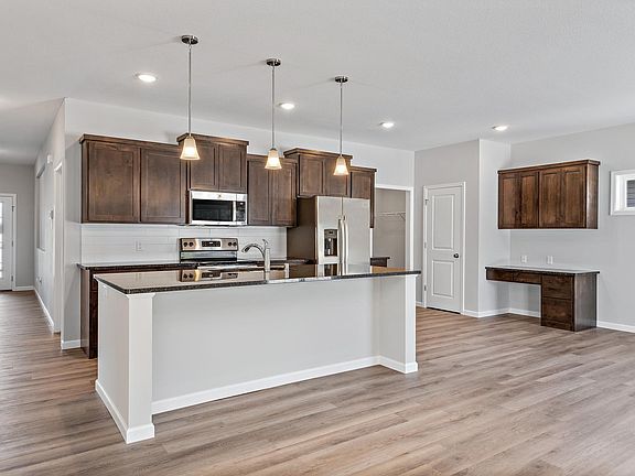 Your family will love the layout of this charming rambler-style home with three bedrooms, two bathrooms and an incredible, open space for entertaining. The modern kitchen features upgraded cabinets, a full suite of stainless steel appliances, and a breakfast bar island perfect for enjoying a cup of coffee or an afternoon snack. The family room is an open canvas for you to arrange and decorate in your own style, and it includes access to a back yard deck. A four-season porch with a fireplace gives you the flexibility of a second, separate entertainment area. Owners will find a true retreat in their private suite tucked-away at the back of the home and featuring a walk-in closet and attached bathroom with an oversized step-in shower and dual-sink vanity. This home is located in the new Meadows North neighborhood, where residents are within walking distance to a park and minutes from an array of local amenities!