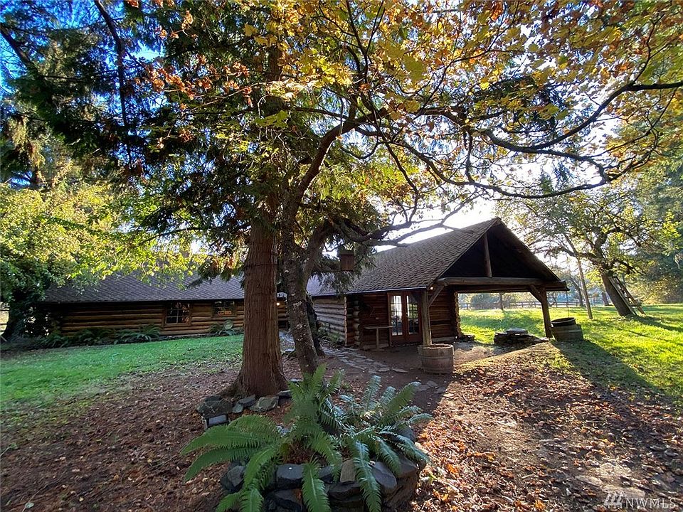 Authentic hand-hewed log home sitting on close to 20 acres. 1785 sqft, 2 Bed, 2 Bath w Rec Room and office space on septic and private well. NO CCR's or HOA's. 30 min to east gate of JBLM. AS IS property with Rustic charm includes gated drive, fenced paddocks, ponds, mature fruit trees, small horse barn and a large shop wired for 220 w/RV parking and extra storage.