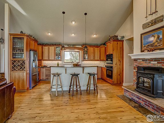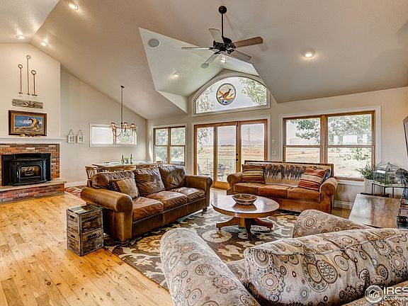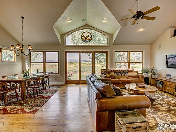 Privacy and luxury combine to create a stunning 3163 sq ft ranch on a 9 acre horse property 15 minutes from Old Town. Inside is your private oasis filled with natural light and breathtaking sunsets over the Front Range. Outside theres room for all your animals without the hassle of an HOA. 5 immaculate buildings, 2 pastures has something for everyone: 50' x 30' Cleary barn with tack rooms, 30' x 20' insulated and heated workshop, 24' loafing shed with Nelson auto waterer, and a chicken coop!
