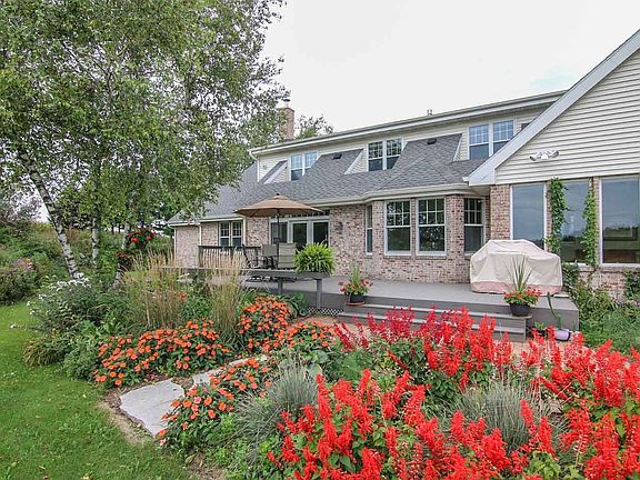 Spectacular executive estate on 15 hilltop acres with 360 degree views of the countryside, sunrise & sunsets. Enjoy beautiful perennial gardens, mature prairies, professionally landscaped water fall & pond. Extraordinary country living only 12 minutes from west beltline. Extensively remodeled & highly energy efficient upgrades. Fabulous chef's kitchen, pantry, main floor master, office, laundry & sun room. Tons of rm in LL with large rec rm, workshop or storage + a 45x30 pole barn/shed. So much more to see and enjoy w/this gorgeous home & property! Zoned allows horses. UHP 1 yr warranty incl.