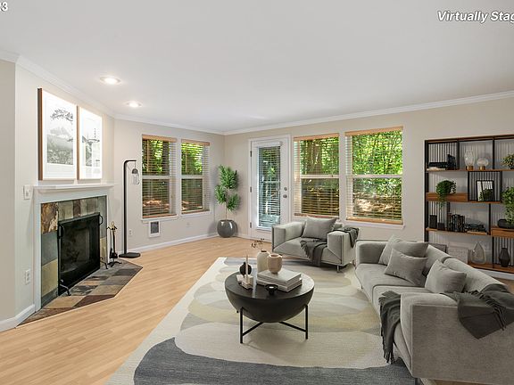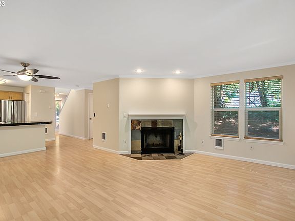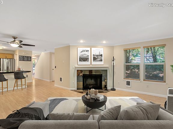 Meticulous 2 BR/2.5 bath 2-story condo. Coveted end unit in a fabulous Lake Grove location. Home has been updated with new paint throughout and new carpet on the 2nd floor and stairs. The beautiful kitchen features stainless steel appliances, F/S refrigerator, granite countertops and backsplash, closet pantry, and laminate floors. An open concept main floor plan includes the kitchen nook and family room with a cozy slate surround fireplace. The 2nd floor features two bedrooms, with the primary bedroom and adjoining bathroom & upstairs laundry. The home boasts a partially covered outdoor patio and alcove for BBQ, backing to lush greenery space. Incredible location with Kruse Village, Mercado Grove shopping, nearby Westlake Park and Mtn. Park trails, medical services, fantastic Lake Oswego schools, quick access to I-5, I-205, Hwy 217, Hwy 43. Wonderful Lake Grove swim park easement! (see photos) Several additional downtown amenities nearby. (Some photos virtually staged).
