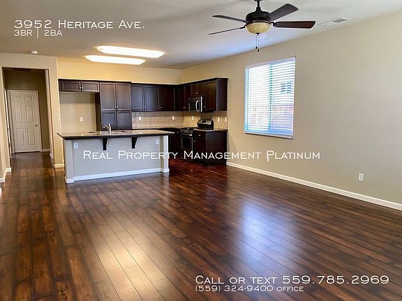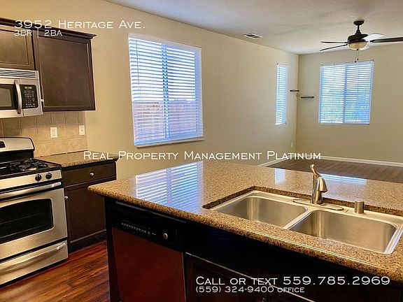 This 3 bedroom 2 bathroom home has 1270 sq. ft. and was built in 2009. Move in Ready! Located in the Harlan Ranch community. Wood laminate floors throughout. Kitchen has granite, stainless appliances, center island, breakfast bar, gas range, microwave, refrigerator. Great room, ceiling fans throughout. Patio off living room, and 2nd patio access from the master bedroom slider. Master bath has dual vanities, shower and walk in closet. Two additional bedrooms. Hall bathroom has single vanity, tub/shower. Energy efficient with a tankless water heater. Interior laundry with washer & dryer included leads to the attached 2 car garage. HOA included. Enjoy the community pool, playground, walking trails. Clovis school district. Front yard care provided. Tenant responsible for back yard care. Pet dog considered with additional pet rent/ deposit. No cats. No smoking. No more than 2 unrelated adults. Renter's insurance is required. Cross streets are Shepherd & DeWolf. DRE# 01901101. All information is deemed reliable but not guaranteed and is subject to change. Status: Active Hoa Community Pool Non Smoking Pet Considered Renter's Insurance Required