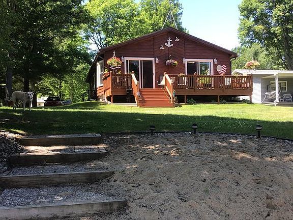 Affordable Waterfront ranch home with 2 bedroom, 2 bath, and Den. Clean and move in ready. Offering most furnishings. Well maintained with new well, bladder tank, roof 2018, new septic pump lift station. Sits on 70ft of water frontage on Secord Lake. Includes beautiful steps to water, outdoor lighting, Rock seawall, beach 10x12 Shed and additional lot across the street with 14x20 shed which can be used as garage. Also note: there is a 30amp plug on side of house and dumping station for a RV. Docks are on permanent pilings they stay in all winter only the poles come out. FYI: Due to the failure of Wixom and Sanford Dams there has been a draw down of the water north of Secord Dam. Once Secord Dam has been inspected and any repairs made, the water should return to its previous level. Currently waterfront can be used for kayaks or canoes and still great fishing.