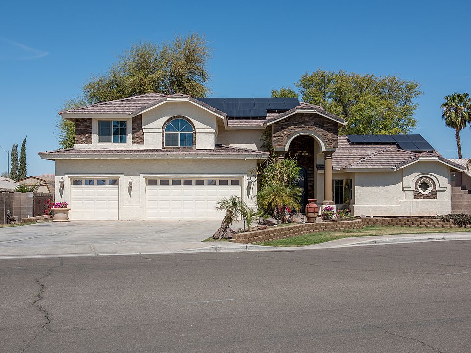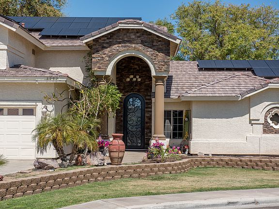 Absolutely stunning home, inside and out, located in the desired Falls Ranch neighborhood. Soaring ceilings and dramatic stairway set the stage for this lovely home. Master suite has room for a sitting area and full ensuite with large walk-in Shower and walk-in closet. Outdoor Arizona living at its best with a 33' x 16' covered outdoor entertaining area, pool, spa and your very own Koi Pond on a 18,000+ sqft. lot. All this under Solar panels that make AZ summer living affordable! Put this gem on your list!