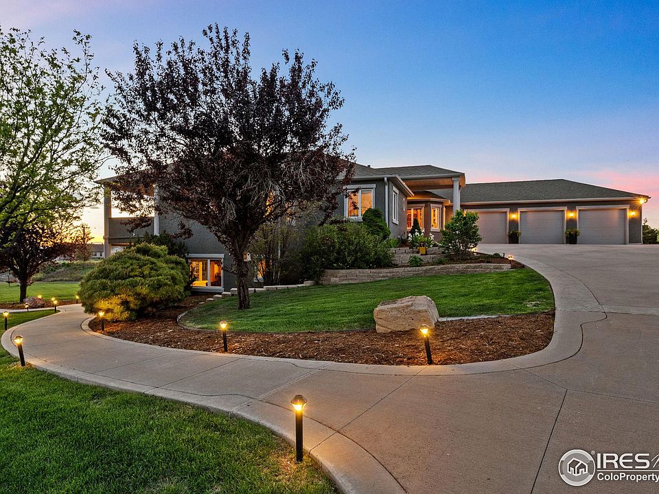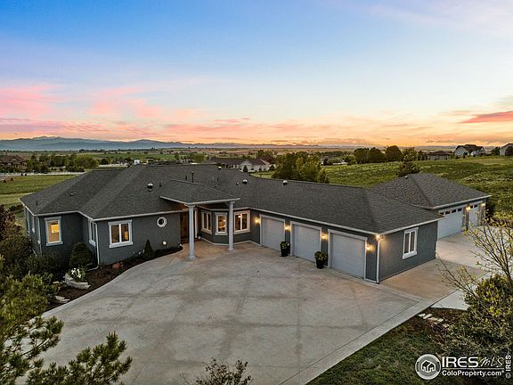 Welcome to your dream retreat! Nestled on 4.64 acres of picturesque landscape, this custom-built estate offers unparalleled views of the Front and Back Range that stretch as far as the eye can see. Privacy and space abound in this tranquil sanctuary, located on a peaceful cul-de-sac within a gated community. Step inside and be greeted by an inviting open kitchen and dining area, perfect for entertaining friends and family. The main floor features the primary suite with a rejuvenating steam shower and sunroom, a second bedroom, bath and private office. Venture downstairs to discover a walkout basement adorned with a 2nd primary suite, 2 additional bedrooms and hallway bath, a spacious rec room, large family room/media room and large storage room. Outside, two covered back patios beckon you to soak in the breathtaking scenery while listening to the soothing sounds of a peaceful waterfall. With over 70 trees dotting the landscape, you will experience the serenity of nature right in your own backyard. Enjoy the oversized 3-car garage plus an oversized 3-car garage/shop for all your cars and toys. Built with meticulous attention to detail, this home features insulated concrete from the ground up, ensuring both durability and energy efficiency for years to come. Don't miss your chance to make this exceptional property your own slice of paradise!