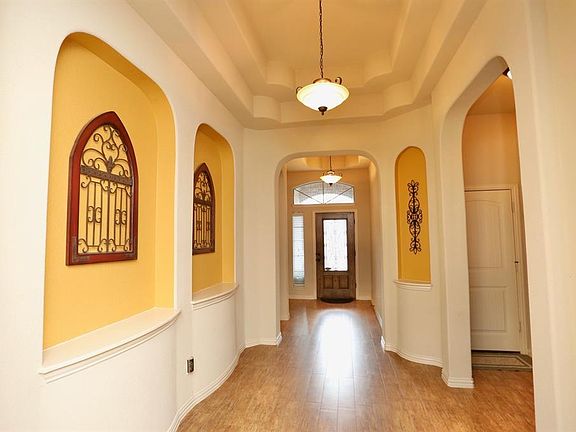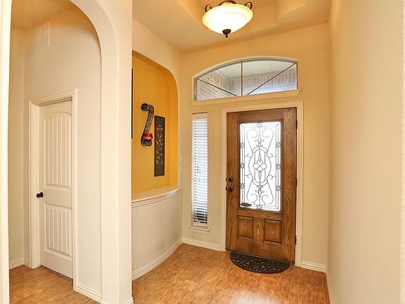 Welcome Home!!! This modern energy efficient Custom Lillian home has every upgrade! Wood look tile, Raised ceilings, Granite counters with a great open flow floorplan, and separate dining room that can be used as office or game space. Large Laundry room connects to primary closet for convenience. Community pool and playground near greenbelt.