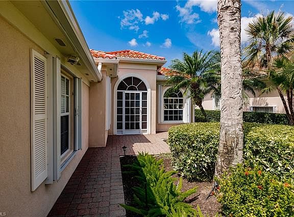 Find your happiness with sunsets every night from your private pool!! Perfect middle of the community location and excellent North Naples home! Well maintained, one-owner home, with replaced roof, resurfaced pool, hurricane shutters, crown molding, granite, tile throughout, motorized shades for slider doors, paver driveway, replaced kitchen appliances, new washer and dryer, electric lanai hurricane shutters, and so much more... You can not build this home new at a price like this in North Naples 5 miles from the beach! 3 bedrooms, den/home office, 2 baths, of which the master has the separate "his and hers" sections, 2 car straight in garage and western facing pool. A high speed internet line, cable tv, and phone line are included in the HOA fees. No CDD tax here! Lawn care and use of amenities are included. Shopping and dining are only minutes away on Vanderbilt Beach Road.