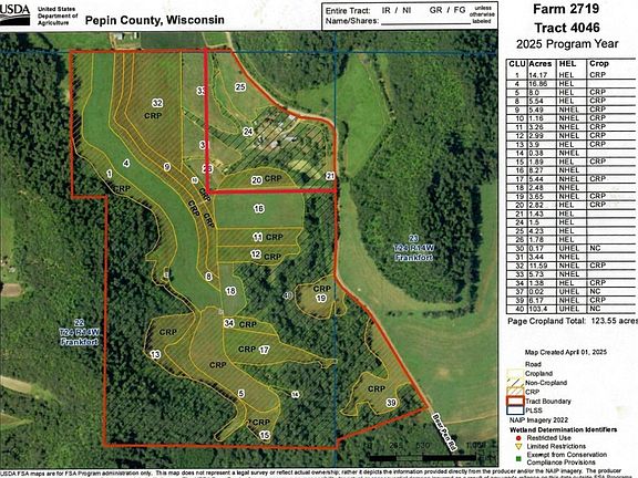Located in the rolling hills of Pepin County near Ella of Frankfort Township, this rare 201 acre tract blends productive ground, strong habitat, and a convenient location. Multiple buildable spots sit just off a paved road, giving you options for a home, cabin, or simple base camp. FSA tillable acres carry an impressive 76.3 NCCPI across the entire tillable. The balance is timber, draws, CRP cover, and interior fields that sit out of sight for privacy. Property Address: TBD Bear Pen RD Arkansaw, WI 54721 Property Features: - Beautiful timber - Ridge System - Pond - Multiple Building Sites - Great Income - World Class Hunting - Incredible Views - Power at Street - Quiet Road - Trails - Great Topo for Hunting - Legacy Property - Access to Chippewa River - Close to Mississippi River and Lake Pepin - Blank Canvas - Multiple Food Plot Location Options - MOSA - Certified Organic Farmland. Conservation and income are in place. Two CRP enrollments include acreage in General Sign-Up and in SAFE WI Monarch and Pollinator. These programs add structure, edge, and year-round cover for deer and upland wildlife while generating annual payments. Program details are on file. Buyer to assume per CRP terms. Timber includes mature white oak and hard maple with upside for revenue streams from lumber and maple syrup. There are sugar bush stands above the tree line and at lower elevations near Bear Pen Road which could be tubed and gravity/vacuum fed to collection points. New trails with two trailheads near Bear Pen Road cut in this year for easy access and game retrieval. It is a big landscape with big possibilities. Farm it, hunt it, build on it, and enjoy year-round access to two of the Upper Midwest’s great rivers. Please read CRP Assumption Agreement. This legacy property must be experienced to be appreciated. Call for a property tour today.