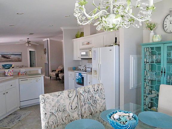 This tastefully FURNISHED THREE Bedroom, TWO Bath home is ready for you to call home! Split floor plan makes it easy for guests to stay. Big kitchen and an open floor plan has definite advantages. Enjoy the Florida sunshine and visiting your new neighbors on the front lanai. Wide drive, 2022 ROOF, nice flooring and great curb appeal. Your new home is waiting for you!