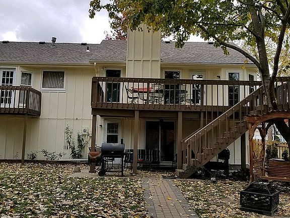 Curb appeal in quiet cul-de-sac; one of the original Raintree Lake properties! Lots of mature trees, birds, and an occasional fox depending on the season. Dog and cat friendly. Fully finished basement with sliding glass door to outside porch and grilling area. Large wood-fenced yard with separate fire pit and playground. Large main deck, great for entertaining or just relaxing. Separate walk-out privacy deck from upstairs master bedroom. Fireplace in living room and master. New a/c and 2-cycle furnace. New flooring and energy efficient windows. Cozy original interior architecture and design. Beautiful location and exceptional neighbors!