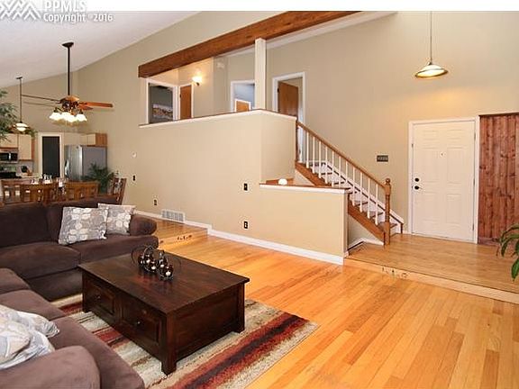 This Gorgeous Pre-Inspected D20 Home Is Move-In Ready With Sunroom, Private Deck And Trail Access From Yard - Don't Miss This Home! Gleaming Hardwood Welcomes You With Convenient Built-Ins In The Foyer. The Great Room Features Skylights And Wall Of Windows - Flooding The Main Level With Natural Light - And Cozy Fireplace With Gorgeous Floor-To-Ceiling Stone Work And Built-In Shelving. Beyond Is The Kitchen With Stainless Steel Appliances, Oversized Pantry, Counter Bar And Spacious Dining Nook Which Walks Out To The Awesome Sunroom With Brick Flooring. From There, Walk Out To The Ample 2-Level Deck With Privacy Trellis And Mature Trees. The Huge, Fenced-In Yard Provides Ample Gardening Plots And Has Trail Access Via The Rear Gate. Upstairs Is The Master Bedroom With Vaulted, Beamed Ceiling And Ceiling Fan, And Adjoining Bathroom. An Additional Bedroom Is Also On The Upper Level. The Lower Level Features 2 More Secondary Bedrooms And ¾ Bath, As Well As Conveniently-Located Laundry Space. The Basement Is A Large Rec Room And Current Storage Room, But With Window, Offers Opportunity For 5th Bedroom. Interior Upgrades To Include: New Carpet and Newer Electrical Panel! All Located In Esteemed Academy District 20 With Convenient Access To Hiking, Biking, Shopping, Dining, Neighborhood Parks And I-25 or Powers For An Easy Commute Anywhere In Town Or Denver. Don't Miss This Home!