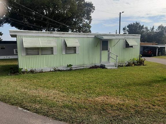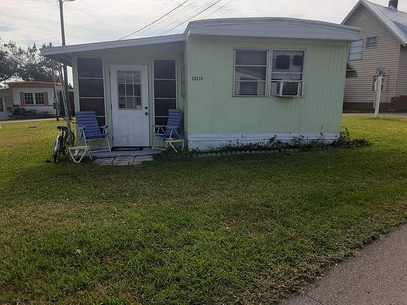This home is situated on a large corner lot. The bonus room is super sized giving you lots of options in this 1 bedroom 1 bath home. The home packs a punch with a large living/dining area. You'll be amazed with the amount of storage this home has. Flooring is new throughout. Roof over was done in 2019. You can purchase this home furnished or unfurnished, so come take a look .... this home has a lot to offer. This an active resort style 55 plus community in Zephyrhills. Enjoy the tropical surrounds in a low-maintenance lifestyle and convenient access to all there is to see and do in this idealistic neighborhood. The community features a pool, planned activities, a newly refinished clubhouse with new kitchen, game table, pool table and darts. The community also features shuffleboard, a fire pit, patio area and professional grill. As a land lease community, while you would own your home itself, the land it resides on is leased. Lot rent is $700.00 per month (care of common areas and lawn mowing).