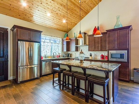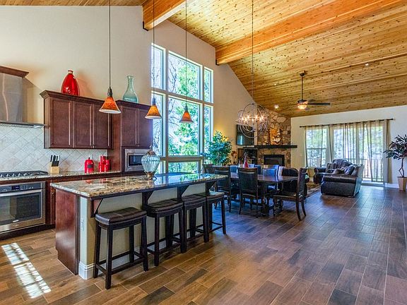 This recently constructed (2016 by Granville Homes) 4 bedroom 3.5 bath cabin is located in the prestigious Sun Rock development in Shaver Lake, CA. Beautiful sunset views to the west await you while relaxing on the deck while grilling dinner on the BBQ with friends and family. This is a true mountain home with all the modern amenities including central heating and air conditioning, open floor plan, porcelain tile wood-look flooring, and carpet in the bedrooms. The kitchen has modern stainless appliances accented with granite counter tops, wood cabinets and custom tile backsplash. Wood ceilings add to the mountain house feel, accented by the large widows throughout which bring the outside natural landscape in, and a lovely rock faced gas fireplace to keep you warm on cool Mnt nights. Just a beautiful mountain home, set on a perfect lot in one of the best places on earth Shaver Lake!