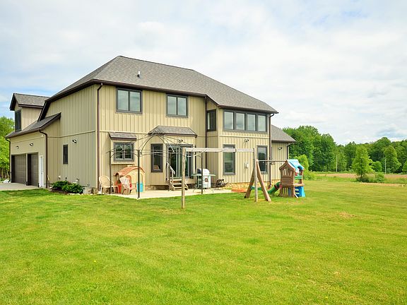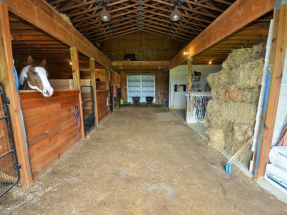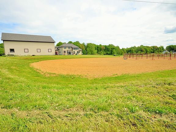 Come see this gorgeous custom built 4bd, 2.5 bath with 36x48 finished barn feat 4 stalls, 2 overhead doors, h/c water plus elec all sitting on 6+ acres with lg pond, riding area & pasture. Walk into your 2 story tile foyer flanked by office/dining rm & flowing to an expansive 2 story great room. Cathedral ceilings, hand scraped hardwood floors & a wall of windows help you enjoy the gas stone fireplace & beautiful country views. Open layout to sprawling eat in kitchen w/ granite countertops, custom backsplash, easy to close cherry cabinets & ss appliances plus a desk area w/ great storage. 1st floor half bath, lg laundry & 1st floor cathedral master bdrm w/ glamour bath. Walk in tile shower w/ body jets, Jacuzzi tub & walk in closet. Upstairs awaits your loft overlooking the great room w/ 3 bdrm &bath. Lg br/bonus room w/custom dormers & ceiling lines also wet bar. Lg basement & concrete patio w/ awning.