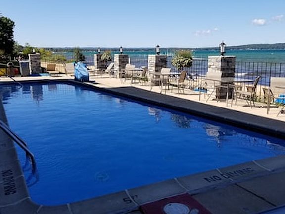 This studio condo at Pointes North Beach Resort offers a gorgeous beachfront walkout with wall kitchens and covered balconies, accommodating up to four guests. Enjoy full access to the beachside heated pool, and step out onto the sand directly from your private beach deck. Experience the beauty of Northern Michigan with sunrise and sunset beach walks, morning coffee, or complimentary champagne in the evenings. Located on the sandy beaches of East Bay, this condo provides close access to everything Traverse City has to offer. The condo features a king-size bed and a queen sleeper sofa, smart TVs with streaming platforms, and a fully equipped kitchen. Enjoy free parking, pool access, beach access, and shared firepits for a comfortable stay. Guests can enjoy complimentary gym access at The Gym - Traverse City and a bottle of Chateau Chantal Celebrate Sparkling Wine. Additional services include personal chefs, in-room massages, grocery delivery, and more. Discounts are available for wine tours, boat rentals, and watersport rentals. Pointes North is ideally situated on East Bay's beautiful sandy beaches, offering easy access to Traverse City's attractions. Downtown Traverse City is just 5 minutes away, and the area is known for its festivals, including the Traverse City Film Festival and The Cherry Festival. Enjoy shopping in waterfront villages and towns, with Horse Shows on the Bay only 8 minutes away. Smoking is prohibited inside the premises, with a $1000 penalty for violations. Linens are provided, but guests should bring their own beach towels. Check-in is at 4:00 PM and check-out is at 11:00 AM.